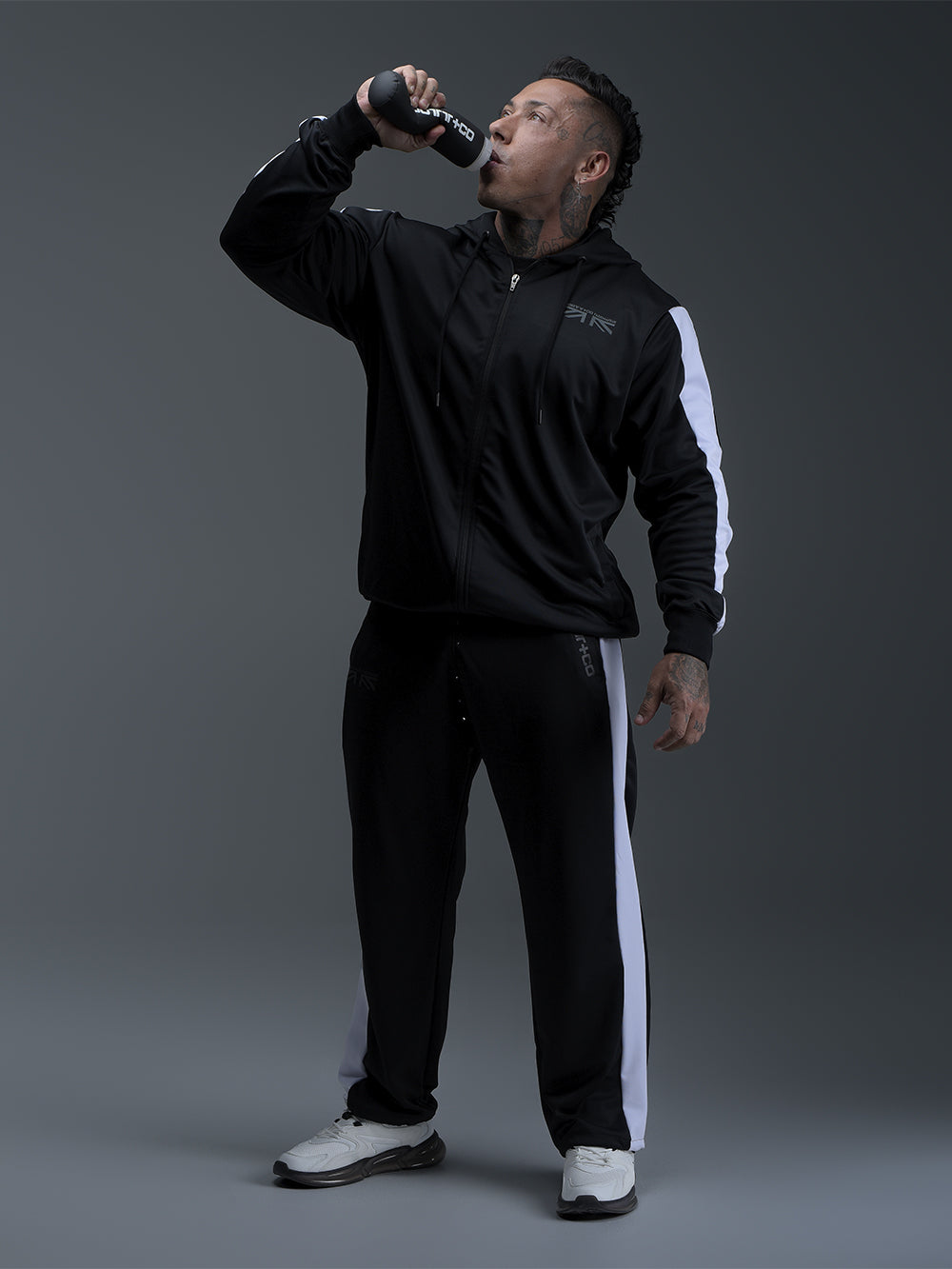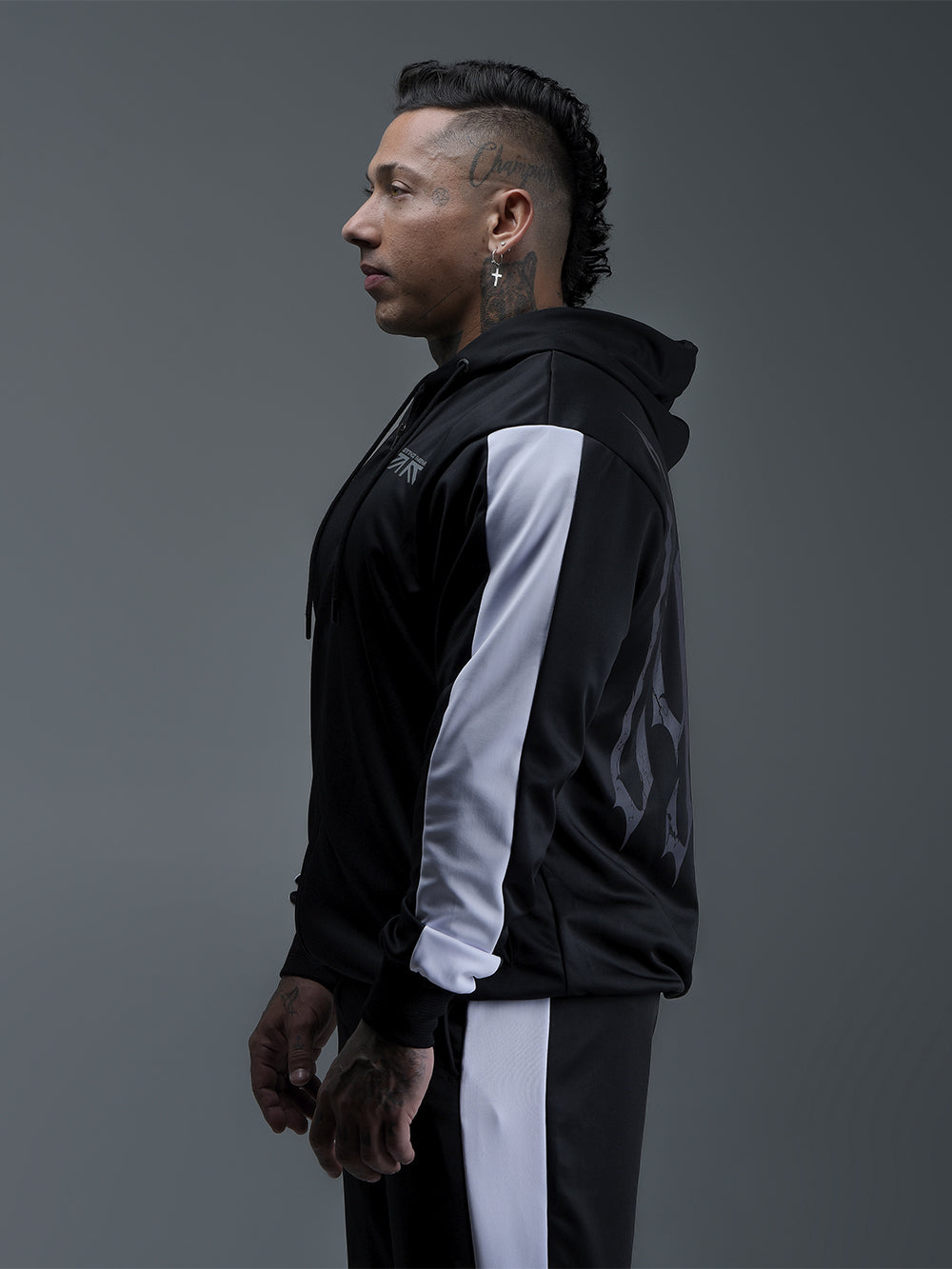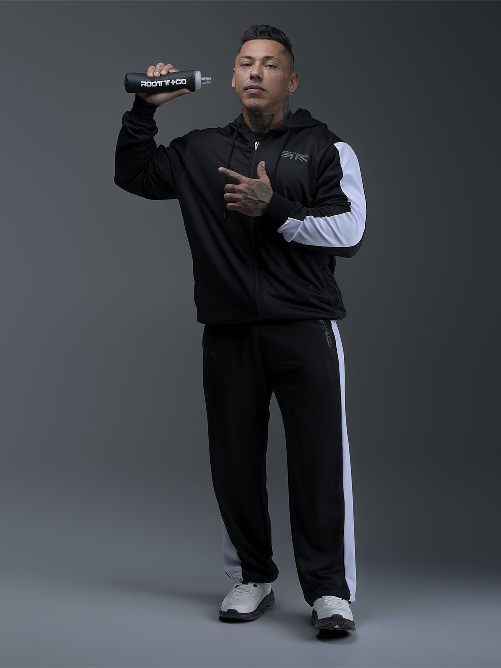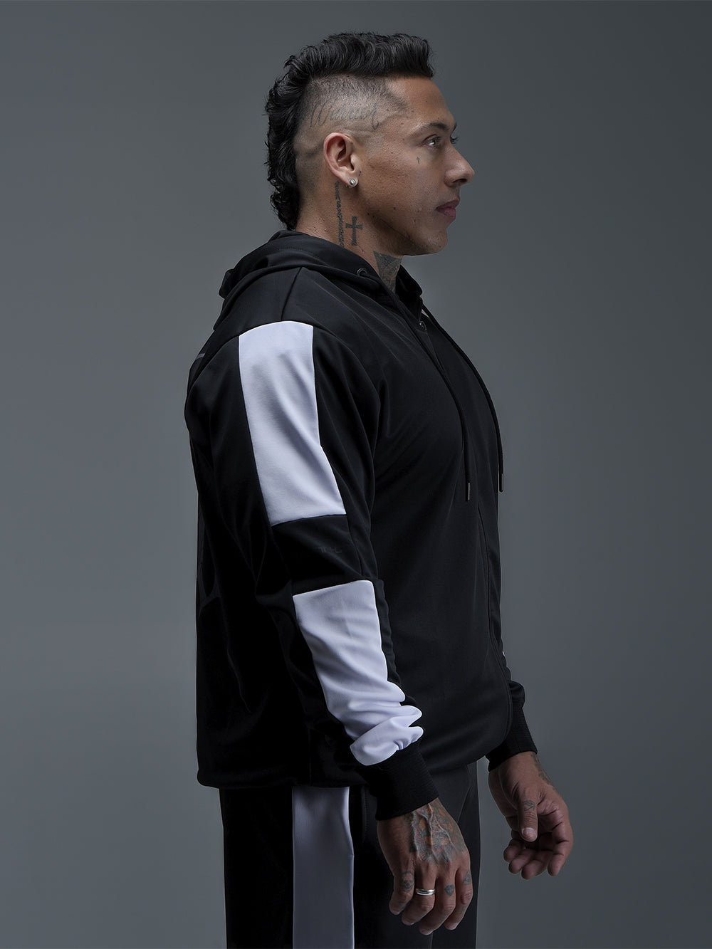 Esta chaqueta deportiva presenta un proceso de lavado en su tela y logo ROOTT+CO, combina estilo y funcionalidad con un diseño lateral en las mangas en negro y blanco. Confeccionada en una mezcla de 100% algodón, ofrece confort y frescura. Sus puños elásticos garantizan un ajuste seguro, mientras que la capota protege contra el viento y la lluvia, ideal para mantener el rendimiento durante cualquier actividad física.